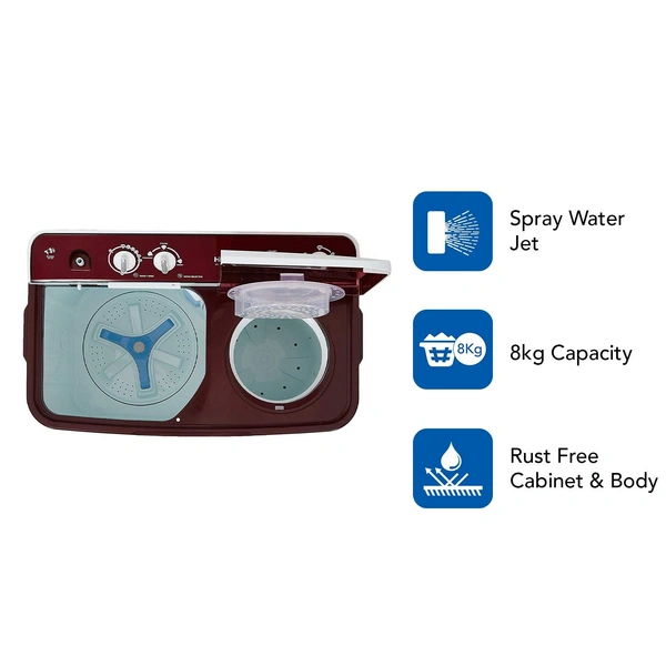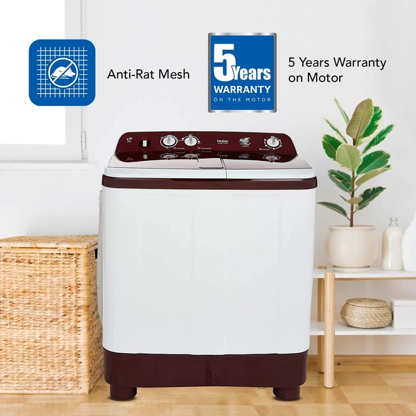 Haier 8 kg Semi-Automatic Top Loading Washing Machine (HTW80-1128BT, Burgundy)