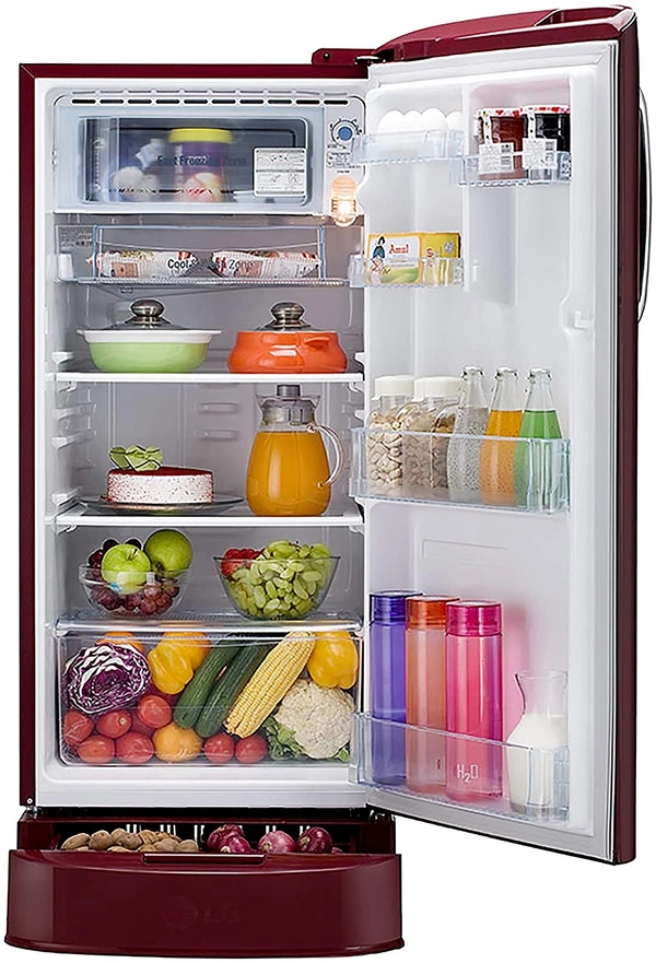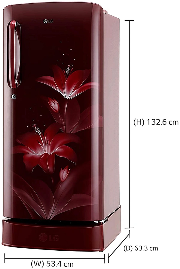 LG 190 L 4 Star Inverter Direct-Cool Single Door Refrigerator (GL-D201ARGY, Ruby Glow, Base Stand with drawer)