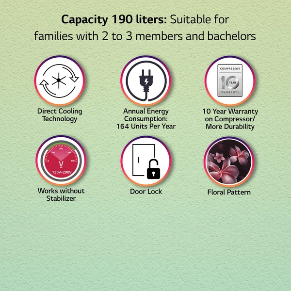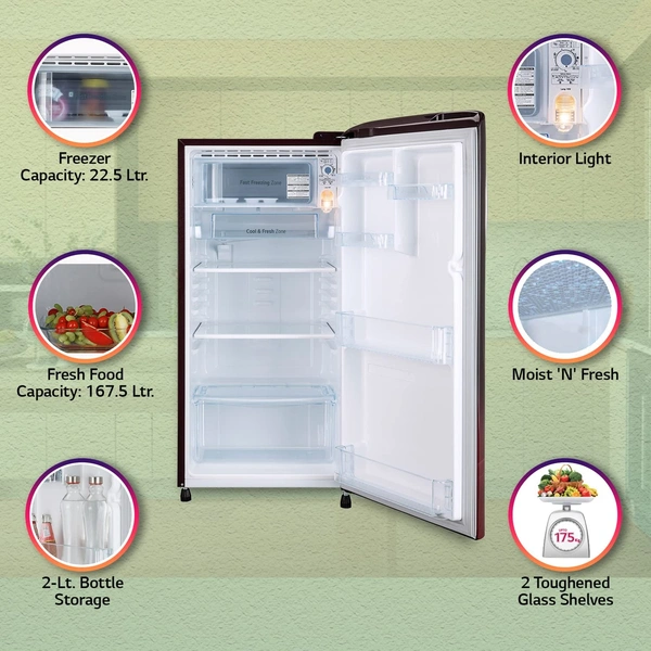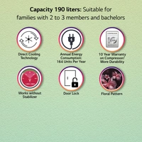 - Capacity 190 liters: Suitable for families with 2 to 3 members and bachelors| Freezer capacity: 22.5L, Fresh food capacity: 167.5L