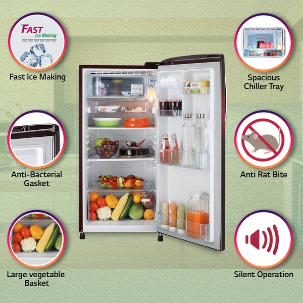 LG 190L 3 Star Direct-Cool Single Door Refrigerator (GL-B201ASPD, Scarlet Plumeria, Fastest Ice Making)