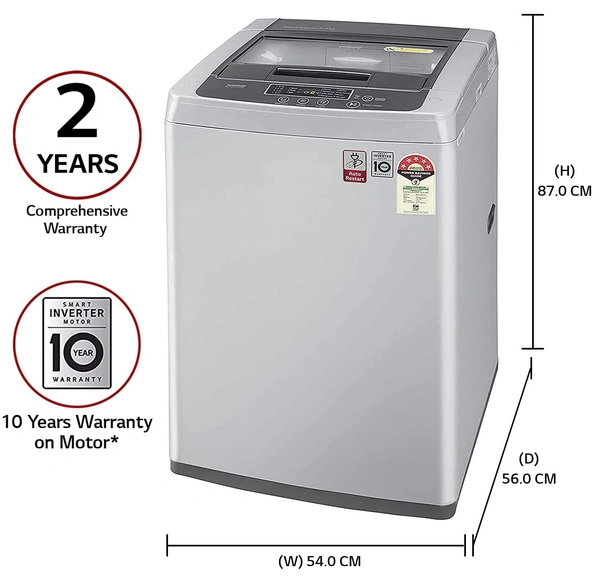 LG 6.5 Kg 5 Star Smart Inverter Fully-Automatic Top Loading Washing Machine (T65SKSF4Z, Middle Free Silver)