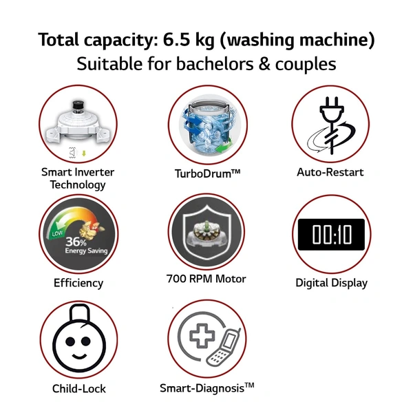 - Capacity 6.5 Kg : Suitable for bachelors & couples