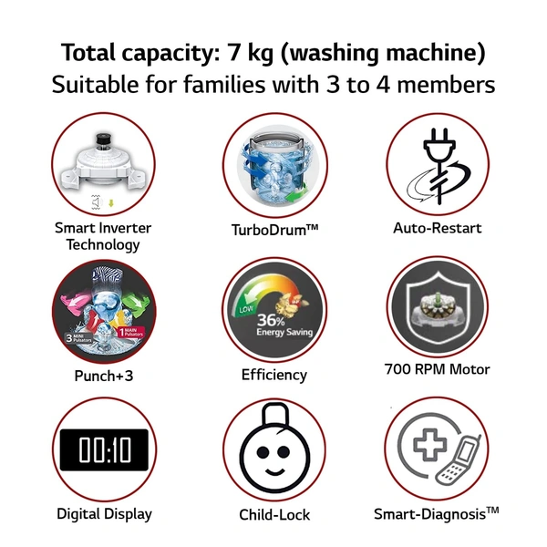 - Capacity 7.0 Kg : Suitable for families with 3 to 4 members