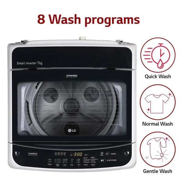 - Special Features: Stainless Steel tub, Turbodrum, Punch+3 Pulsator, Smart Diagnosis, Fuzzy Logic Control, Digital Display, 3- step, Health + Filter, Beeper