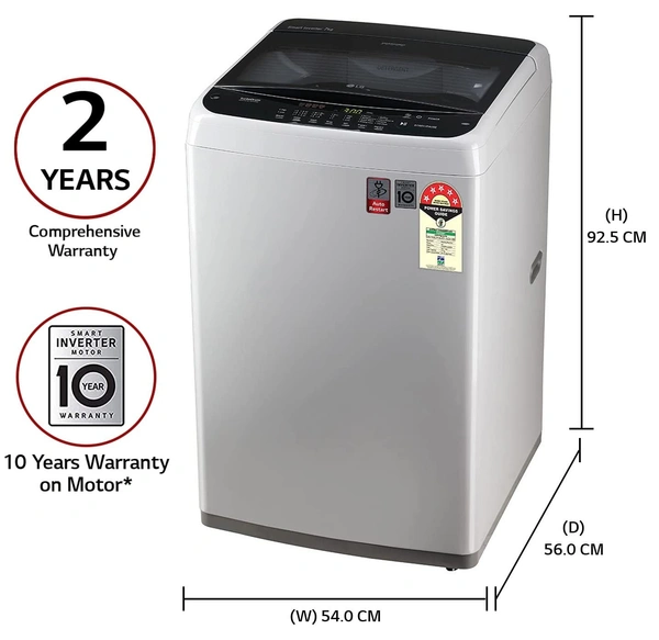 LG 7 kg Inverter Fully-Automatic Top Loading Washing Machine (T70SPSF2Z, Middle Free Silver)