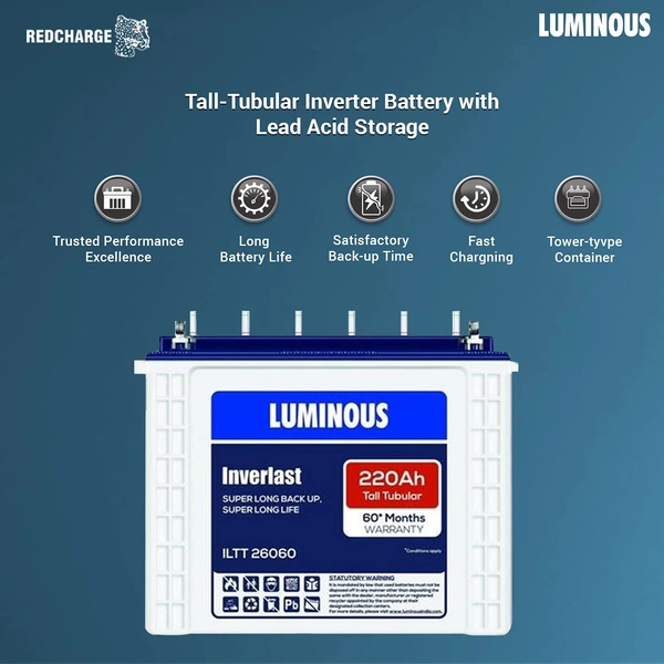 - Package Inclusions: LUMINOUS Inverlast ILTT 26060 220Ah Tall Tubular Plate Inverter battery for home