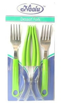 Neelu Dessert Fork Stainless Steel with Plastic handle (6Pcs Set,Multicolour)