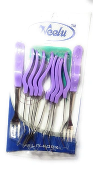 Neelu Fruit Fork Stainless Steel with Plastic handle (6 Pcs, Multicolour)