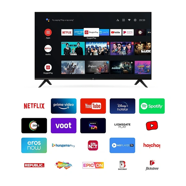 - Smart TV features: Latest Android TV 11, OnePlus Connect Ecosystem, Google Assistant, Chromecast, Miracast, DLNA, Auto Low Latency Mode | Supported Apps : Netflix, Youtube, Prime Video, Hotstar, SonyLiv, Hungama, JioCinema, Zee5, Eros Now, Oxygen Play