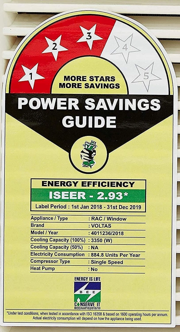 - Energy Rating: 3 Star. Annual Energy Consumption: 884.8 units. ISEER Value: 2.93 (Please refer energy label on product page or contact brand for more details)