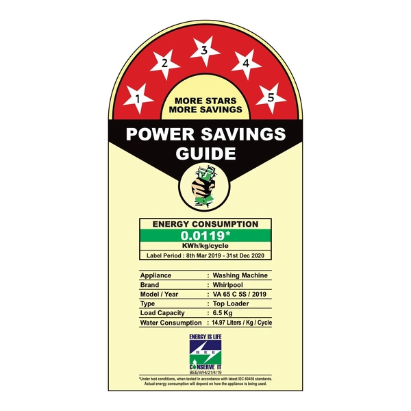 - 5 Star energy Rating - with 5 Star energy Rating, Whirlpool gives you best in class water and energy efficiency